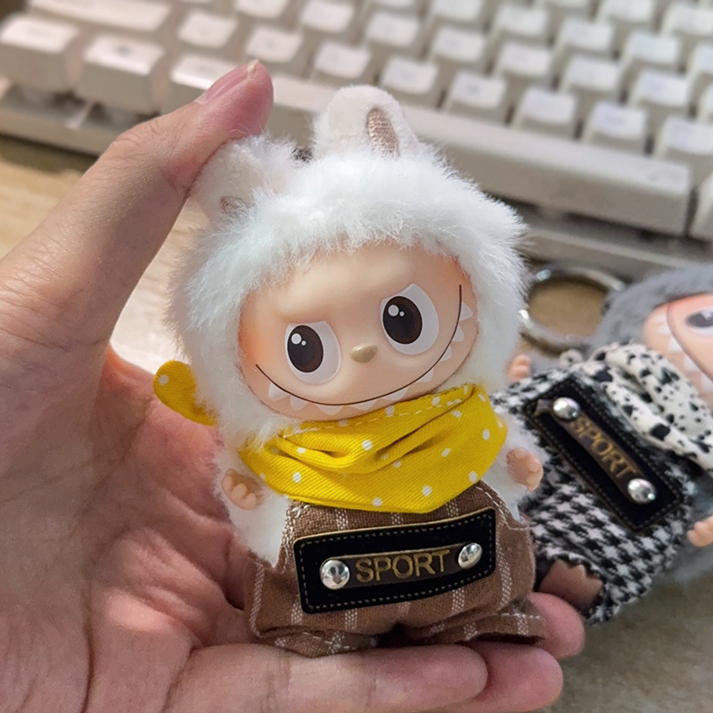 New labubu4.0 baby clothes 10cm doll overalls bib set cloth fourth generation heart bottom password clothes