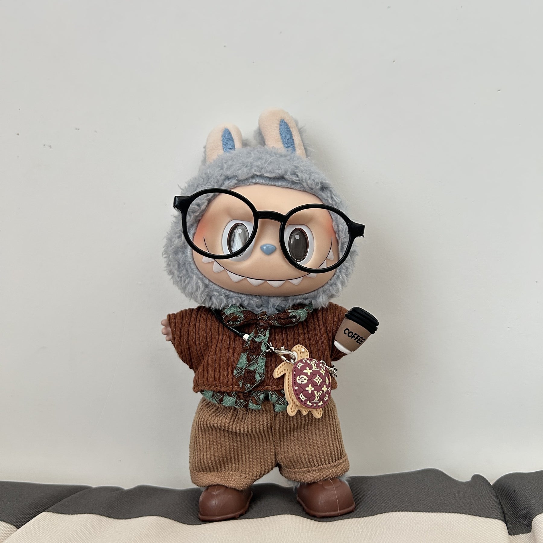 Brown full match (top + pants + glasses + drink + shoes) / Suit for LABUBU 1/2/3 Generations [no dolls] - $35.90 USD