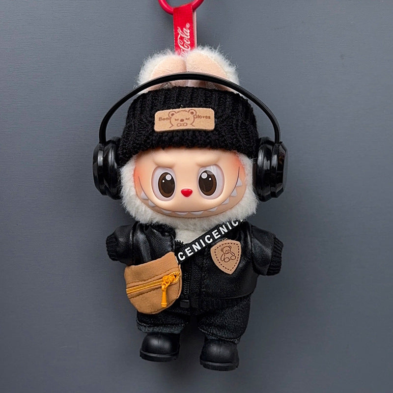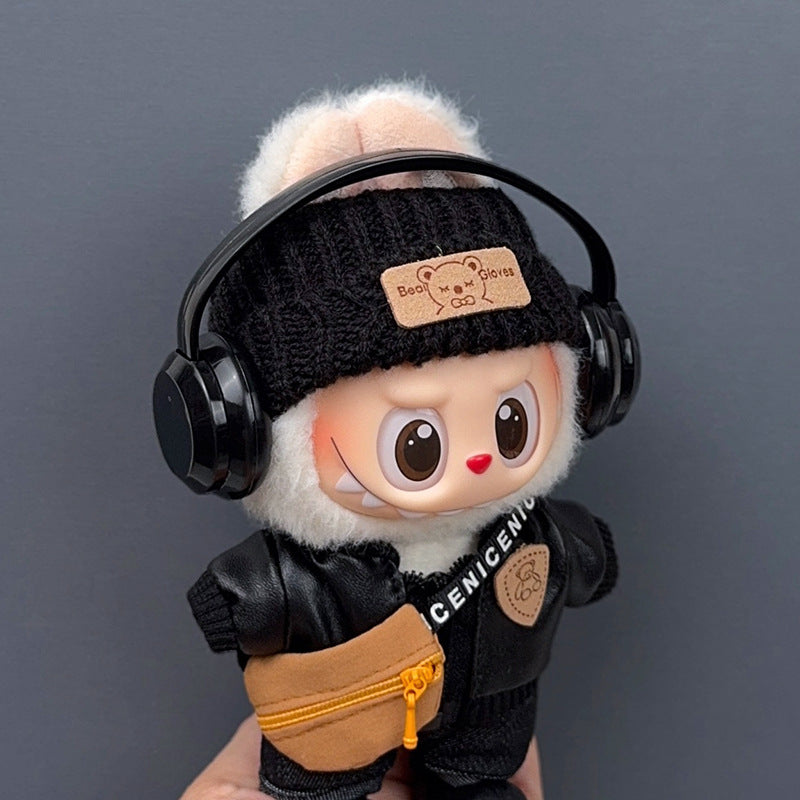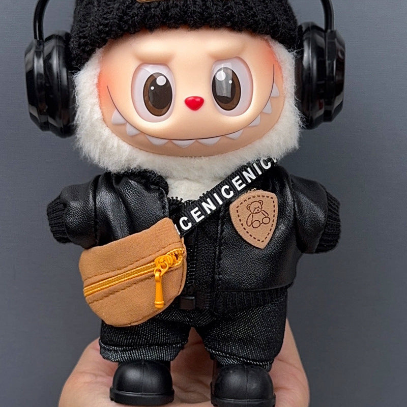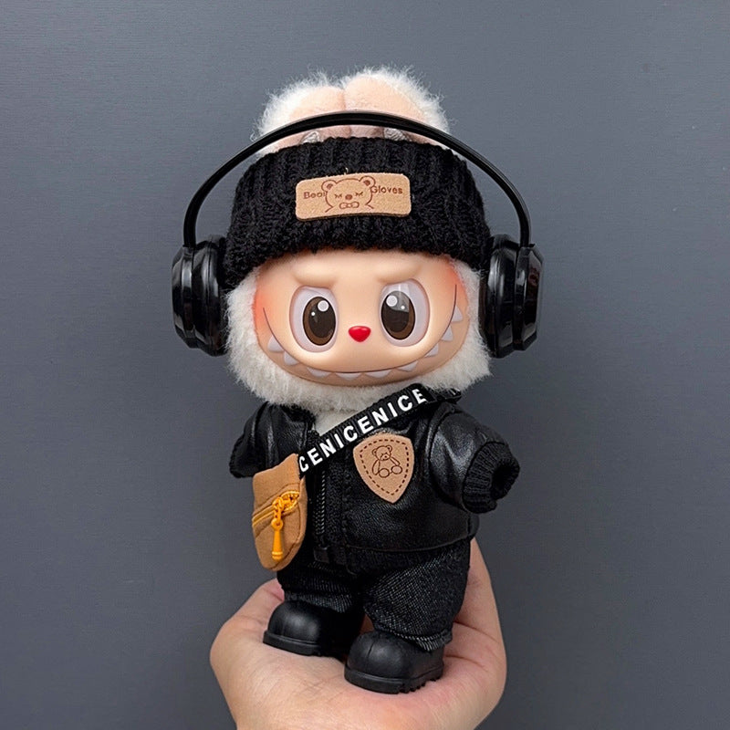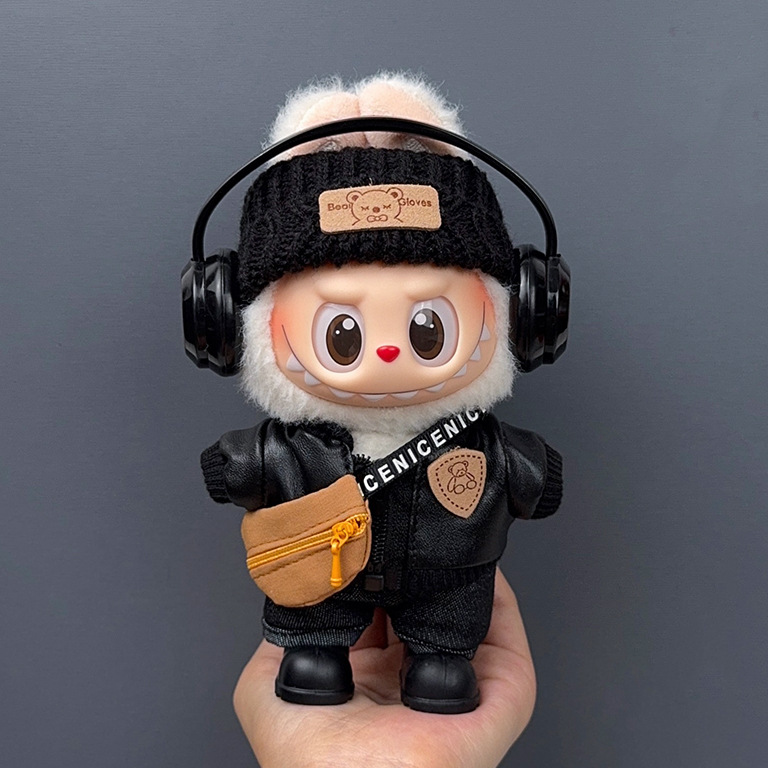 black jacket + headband + black pants + shoes + bag + earphones. / Suit for LABUBU 1/2/3 Generations [no dolls] - $39.90 USD